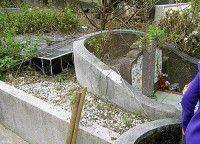 文章日期:2011-04-09 14:26 ■ 兩旁有龜裂的深痕,左邊墓肩生出一棵樹,兩旁墓碑字已掉色模糊。 ...more